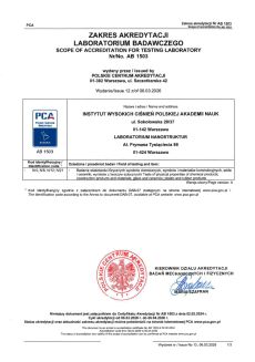 Laboratorium uzyskało akredytację nr AB 1503 udzieloną przez Polskie Centrum Akredytacji i działa zgodnie z normą ISO 17025.